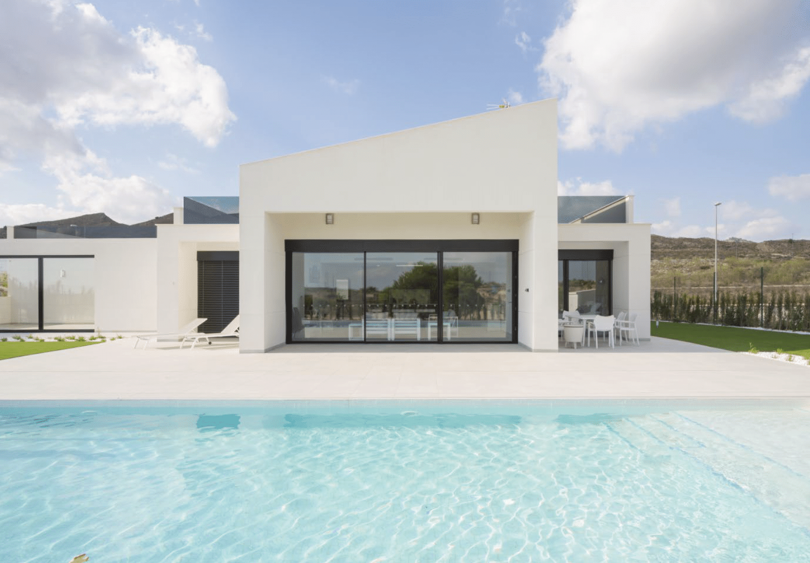 Large modern single level villa offering 4 bedrooms, 4 bathrooms plus a huge roof solarium providing spectacular frontline views of the golf course and surrounding mountains. You must see for yourself !