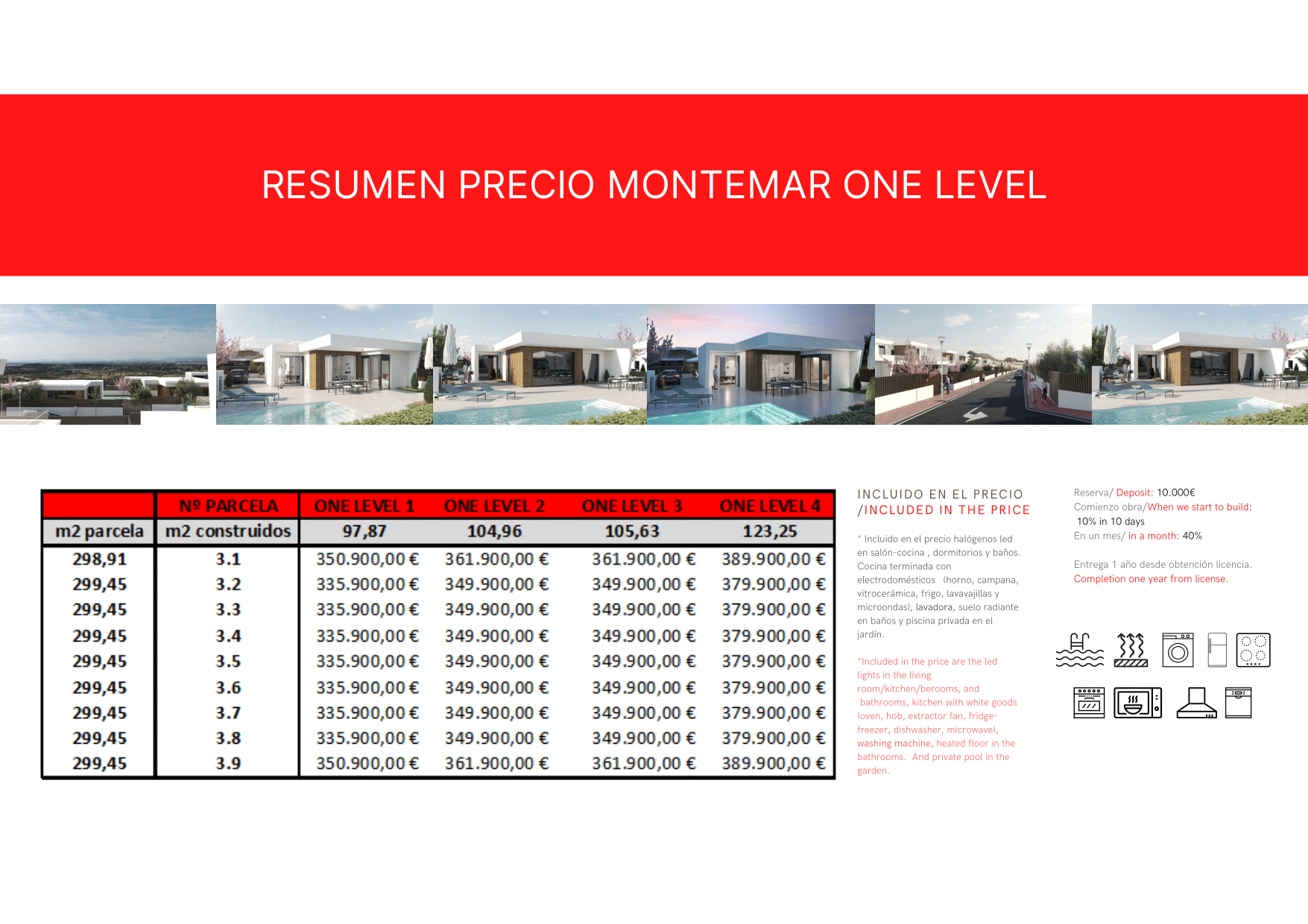 Deposit 5,000€ – 10% within 10 days when construction starts + 40% after 1 month. Balance paid upon completion